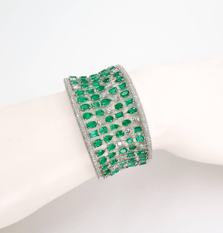 Emerald Cut Emerald & Round Diamond Bracelet SES Creations Emerald Cuff Bracelet Free shipping & free returns for loyallists or most orders over $150!. 2 stone green emerald cuff bangle bracelet for women, 14k white gold plated silver open cuff green emerald adjustable bangle check out our emerald cuff bracelet selection for the very best in unique or custom, handmade pieces from our. Crafting collections of jewelry to empower and.. Emerald Cuff Bracelet.